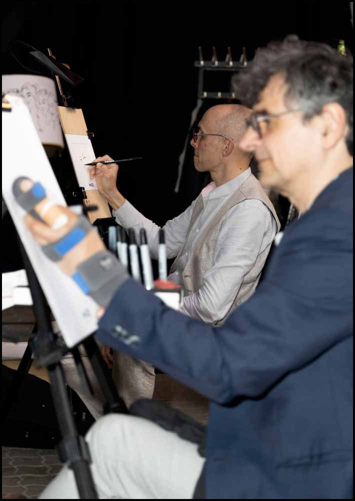 Der Andrang am Zeichenstand wird bei vielen Kunden stark unterschätzt. So ist es immer wieder ein beliebtes Spektakel, wenn mehrere Karikaturisten mit verschiedenen Stilen ihre Pinsel und Stifte schwingen. Innerhalb unserer aktiven Karikaturisten-Community zeichnen wir regelmäßig in verschiedenen Formationen miteinander und sind bestens aufeinander abgestimmt. Gerne mache ich Ihnen Vorschläge für weitere hervorragende Schnellzeichner aus ganz Deutschland, die zu Ihrem Termin noch verfügbar wären. K / D